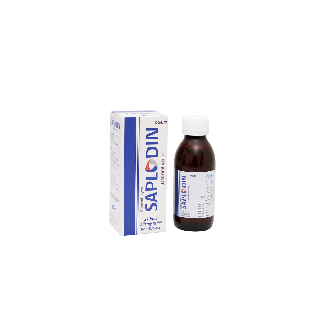 SAPLODIN Desloratadine is used in adults and children to relieve hay fever and allergy symptoms including Sneezing herny nose and red. Itchy & rearing eyes It is also used to relieve symtoms of urticais. (hives red, itchy. Vained areas of the Skin)